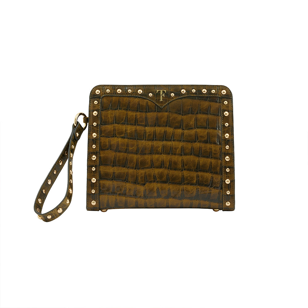 Layla Mystique Clutch - Olive Croc Effect